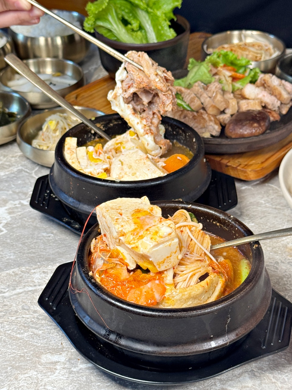 舒服的辣度很下飯,還加了韓式魚板口味很道地,選了海鮮配料誠意十足,嫩豆腐是整鍋的靈魂軟嫩又入味