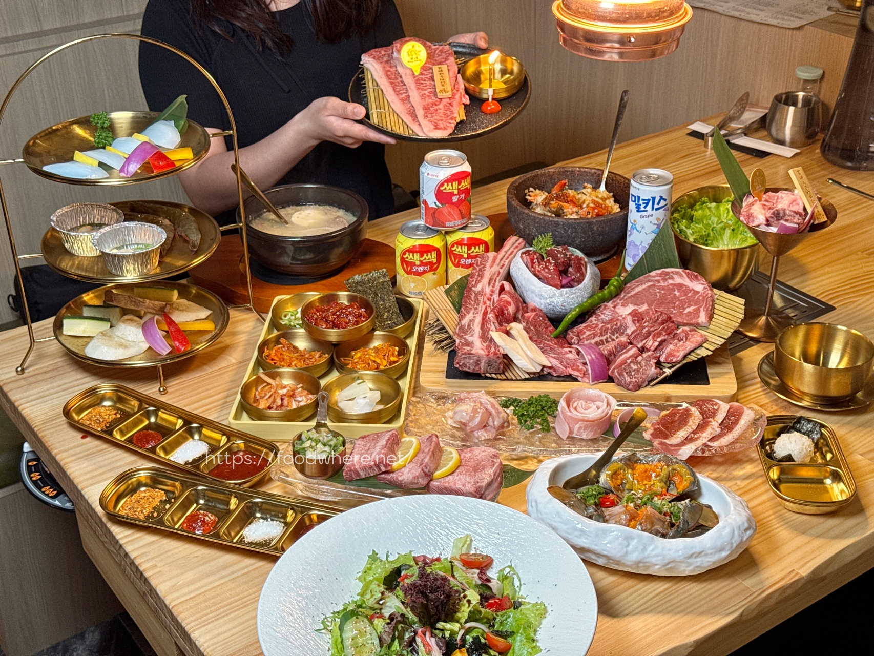 套餐主要肉品一上桌直接震撼視覺,份量澎湃、品項豐富,光是吃肉就爽度破表